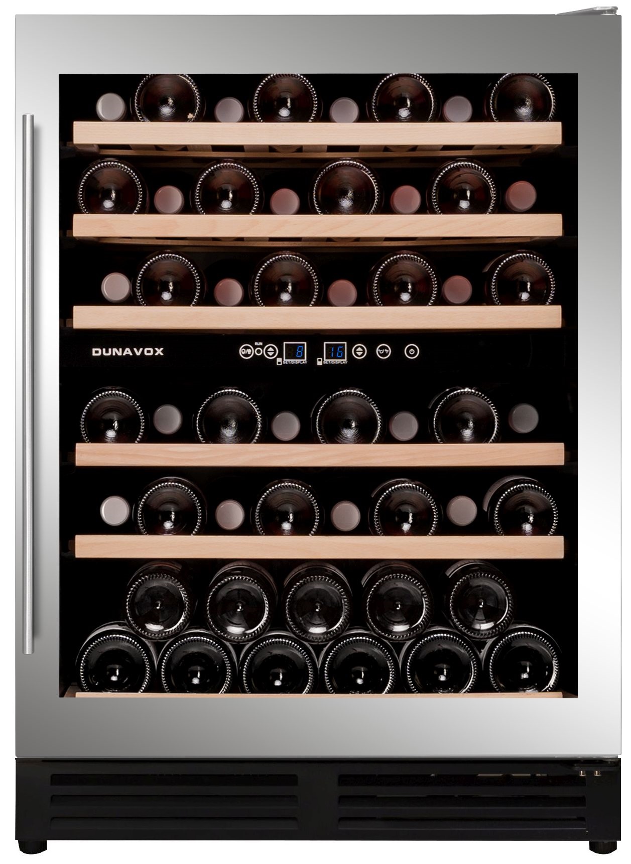 Az exkluzív kompresszoros borhűtő család 2 szekciós tagja. Elegáns, rozsdamentes acél vagy fekete teleüveg ajtaja révén a borok éttermen belüli bemutatására és modern konyhai környezetben történő elhelyezésre egyaránt alkalmas. Kihúzható fa polcokon helyezhetők el a palackok. Ezt a modellt pult alá történő beépítésre javasoljuk. A beállított hőmérsékletek különbsége nem lehet több 8°C-nál!